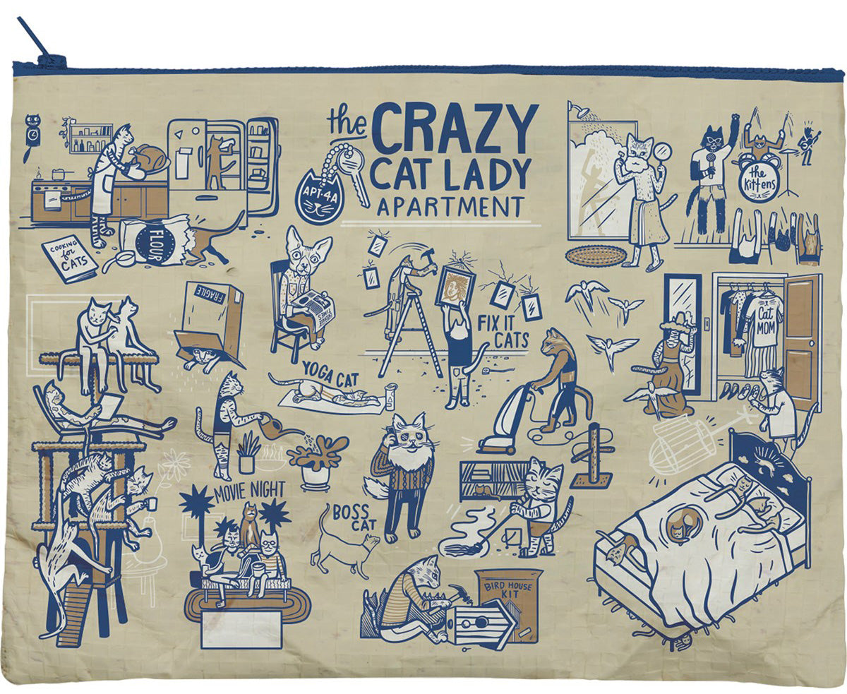 Jumbo Pouch Crazy Cat Lady Apartment Recycled Material Jumbo Zipper