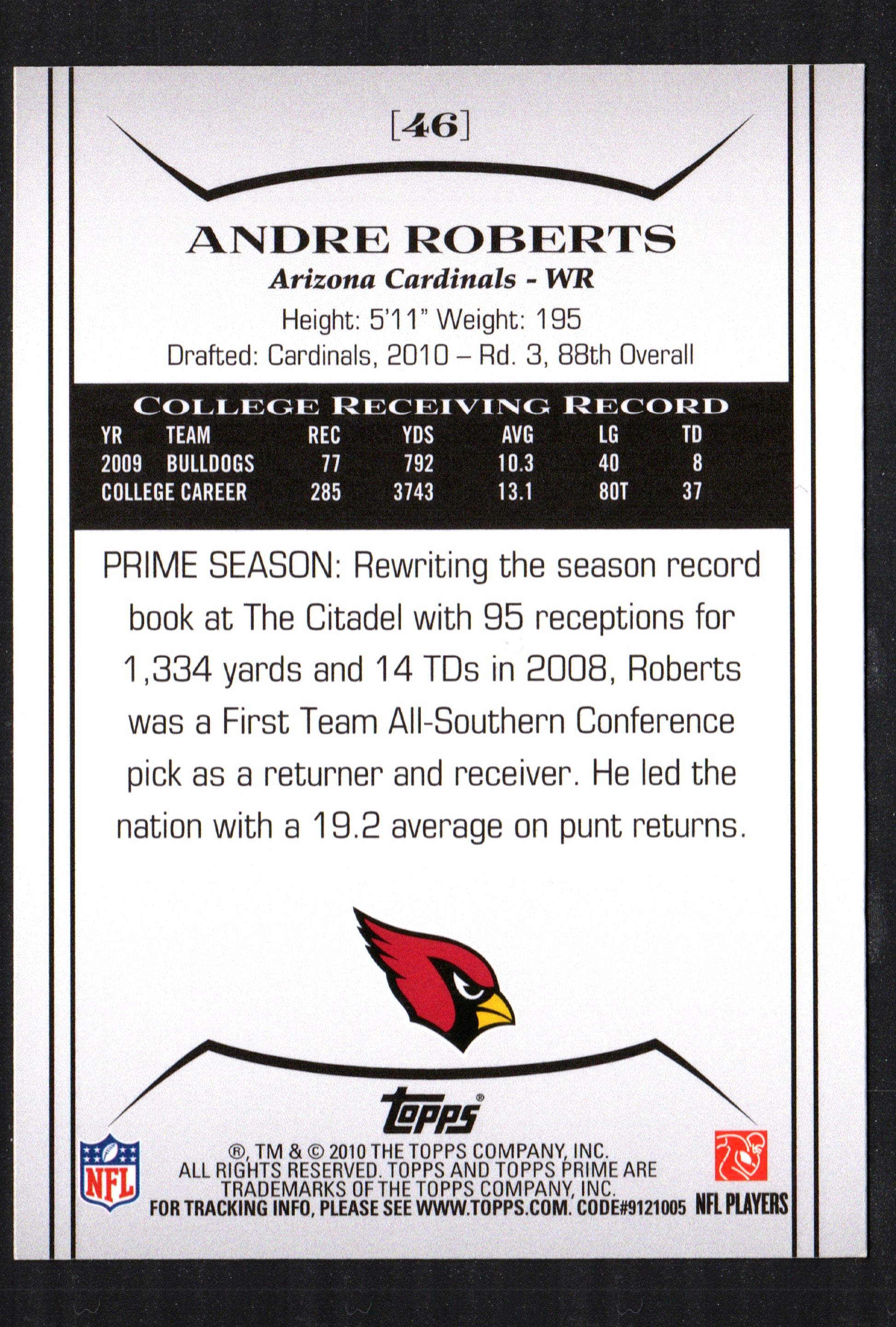 Andre Roberts Arizona Cardinals #46 - 2010 Topps Prime