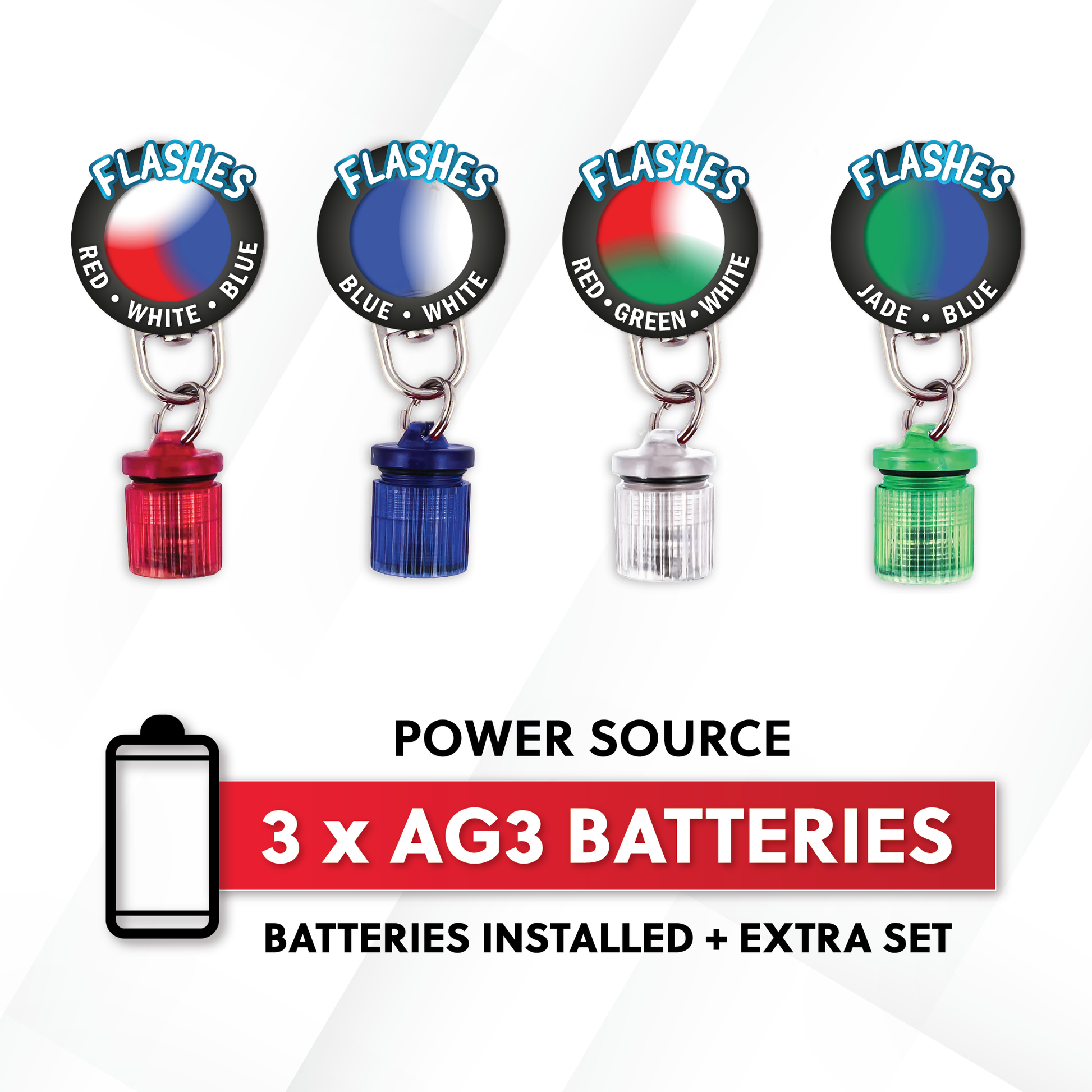 Nothing beats the Original! - Pet Blinkers ensure you and your pet will be seen in darkness and low visibility. Designed to be compact and inconspicuous, each Pet Blinker’s LEDs emit a bright flashing light that can be seen up to a half-mile away. Made of light-weight durable plastic, Pet Blinkers are water-resistant and includes a spring-loaded clasp for easy attachment. Pet Blinkers are activated by a simple on-off twist mechanism and are available in four vivid flashing colors. Using two different size clasps, Pet Blinkers will comfortably fit both large and small dog collars, leads and leashes. Pet Blinkers require 3 AG3 batteries (installed), and each includes an extra spare set. Be Seen – Be Safe – Get your Pet Blinkers today!